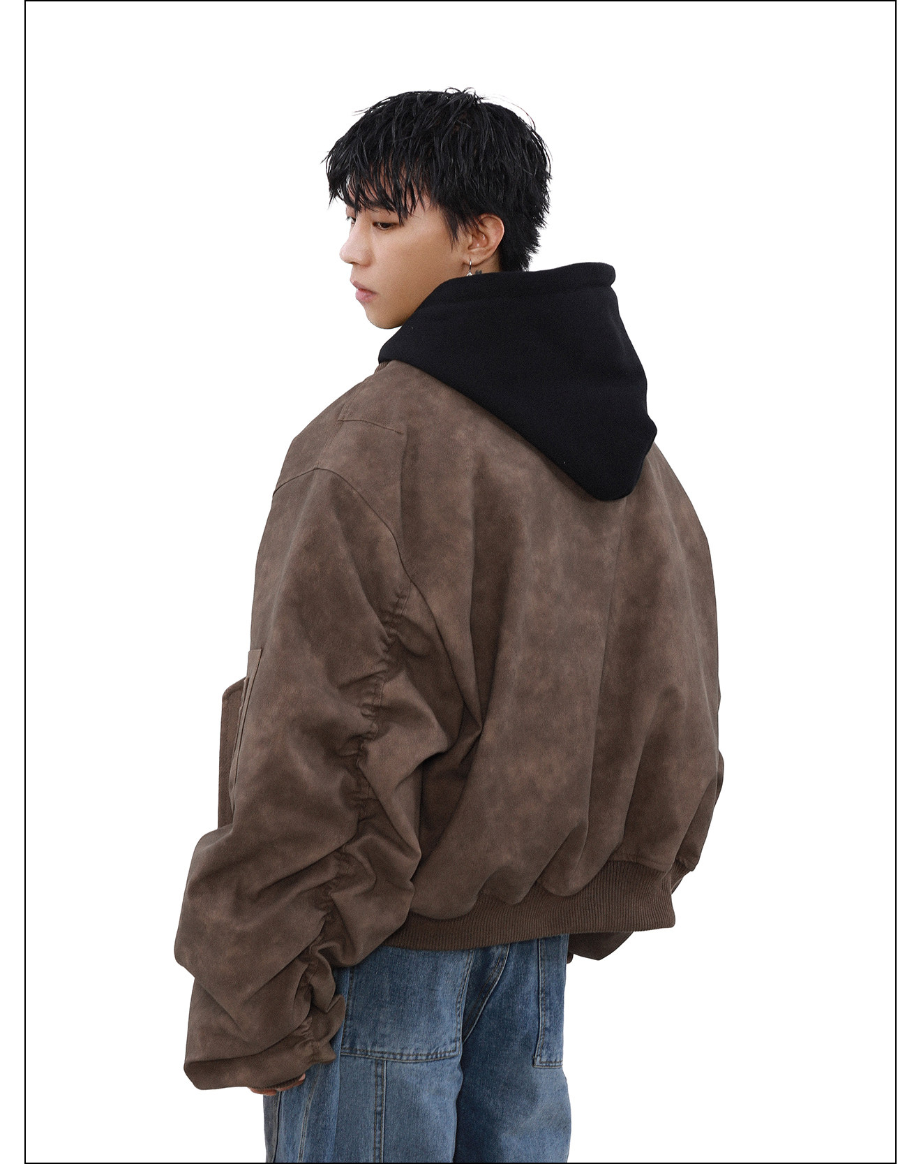 American fake two-piece jacket cotton-padded winter coat men's spring and autumn lazy style loose hooded cotton-padded coat