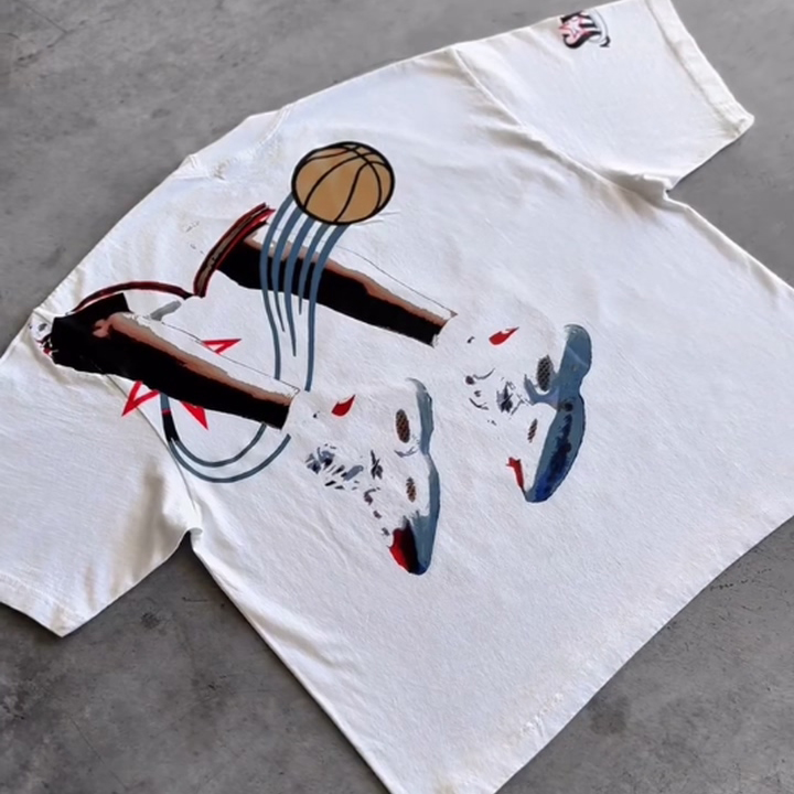 Basketball Letters Print Short Sleeve T-Shirt