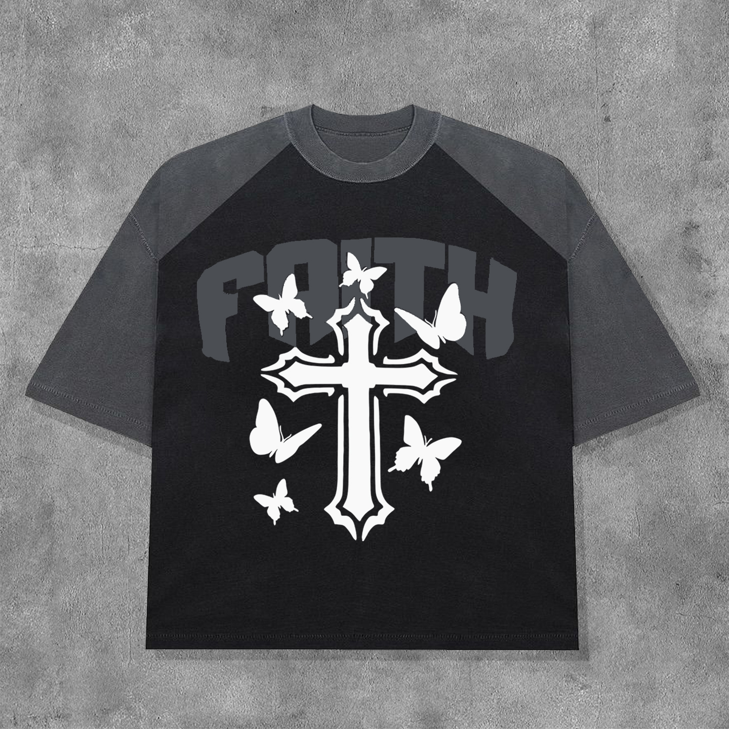 Faith Cross Contrast Color Print Short Sleeve T-Shirt
