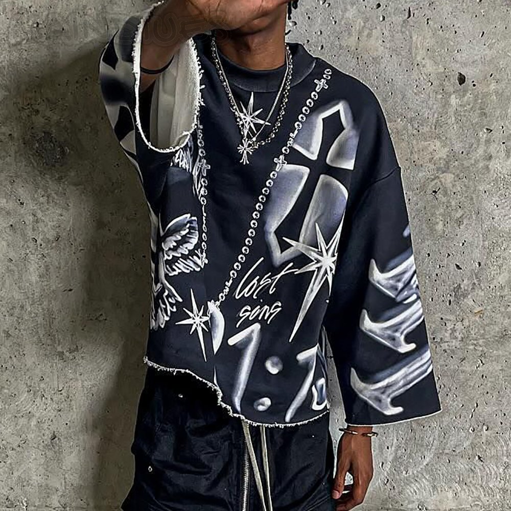 Jesus Cross Print 3/4 Sleeve T-Shirt