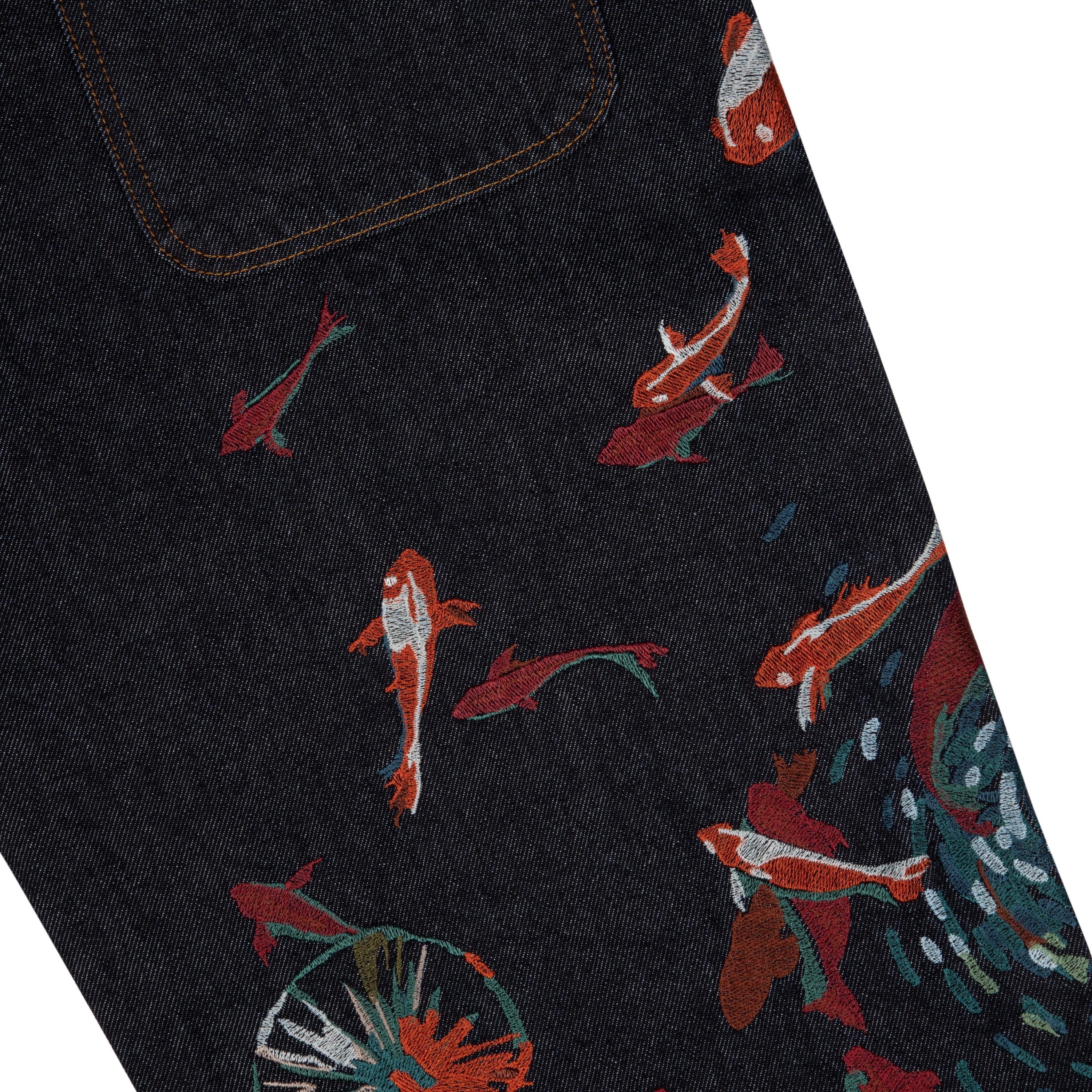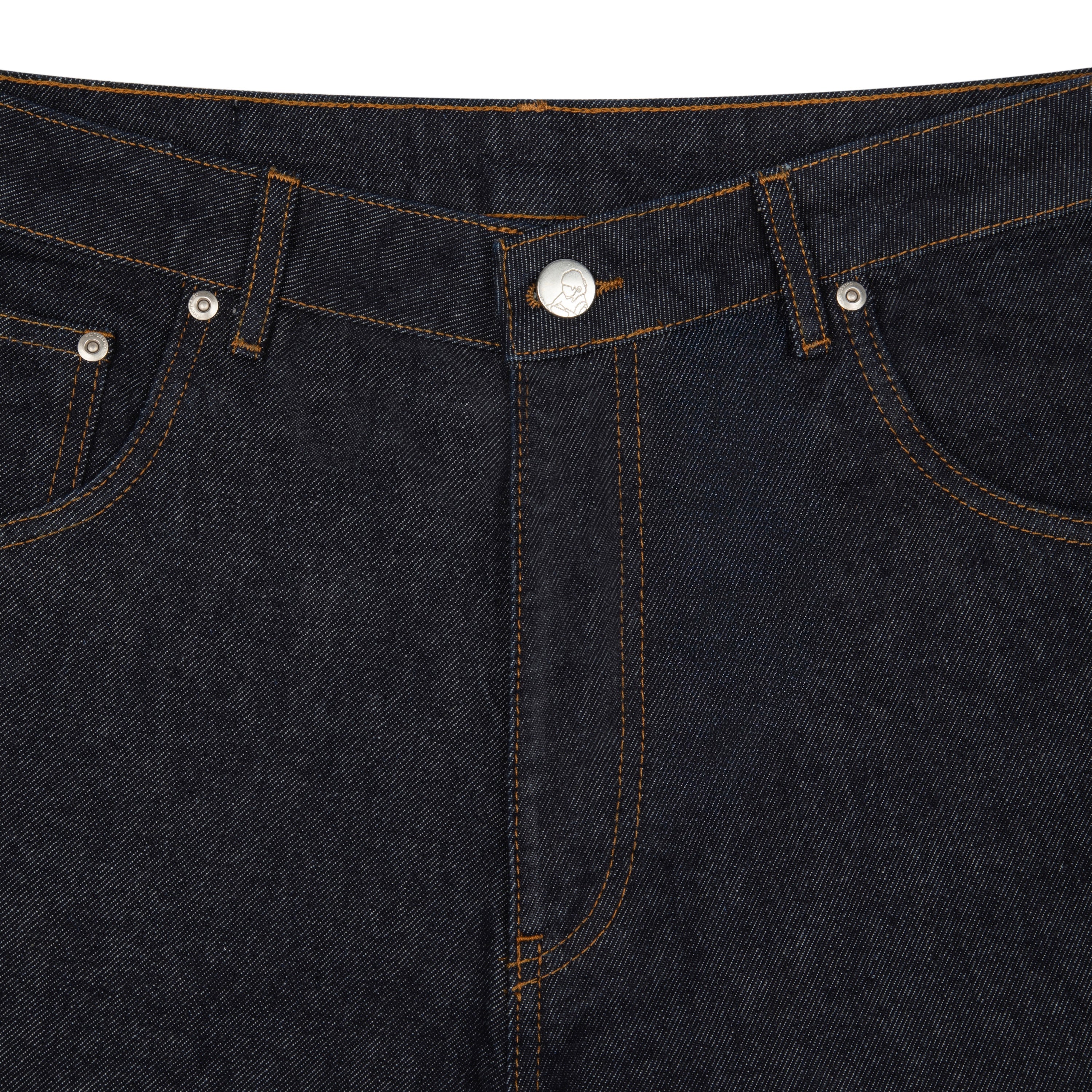 14,5oz denim / 100% cotton / embroidery on back / embroidered leather patch / wash inside out / straight fit / fits true to size