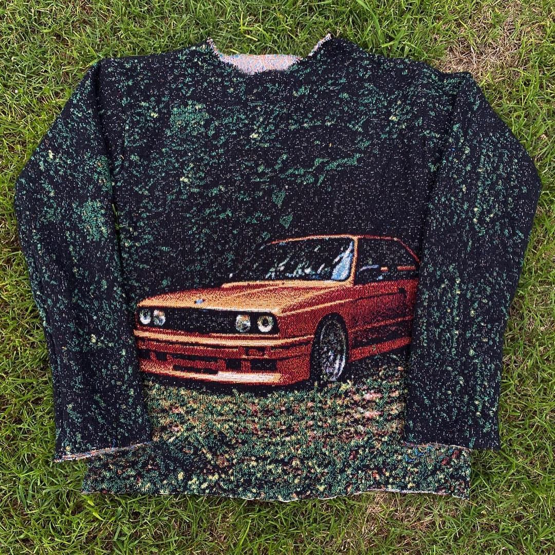 Personalized fashion retro car print crew neck sweatshirt