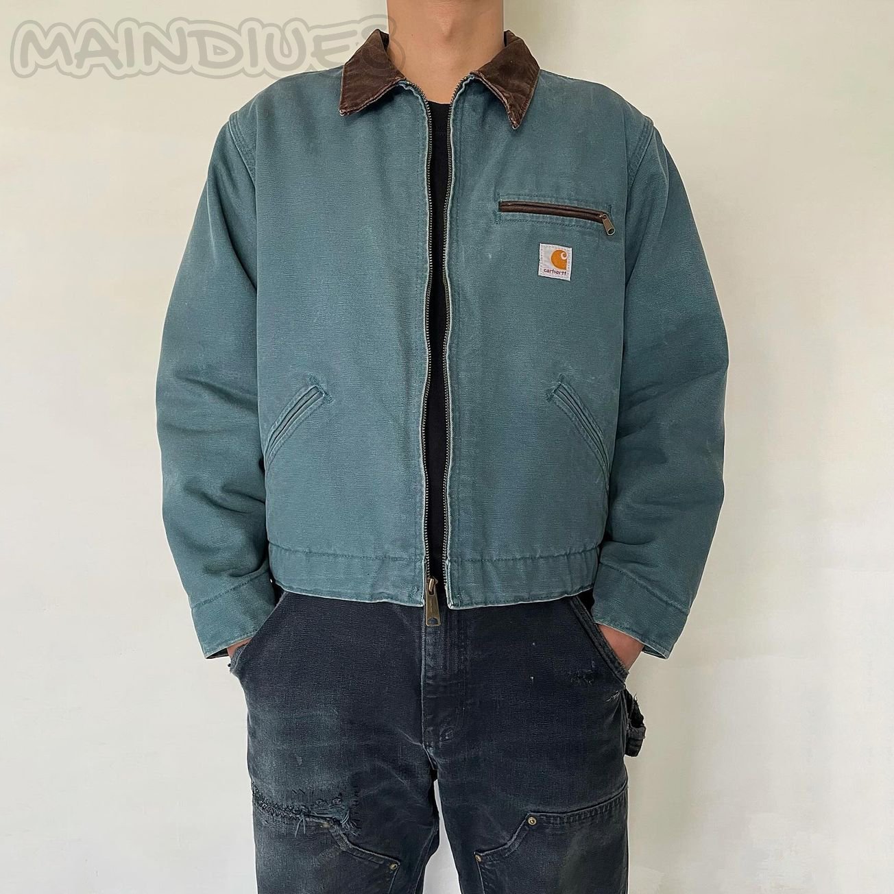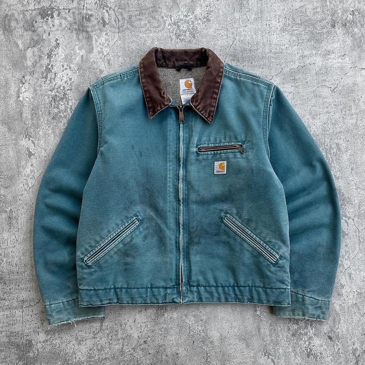 Vintage zipper distressed contrast lapel fleece jacket