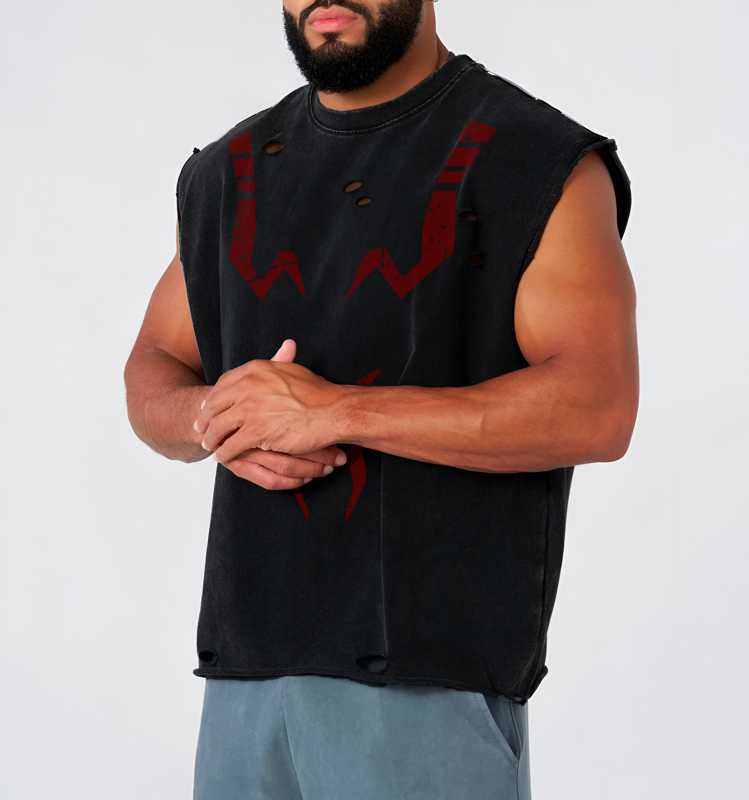 ¡Introducing the Sukuna Cut-Off Tank Tops, designed for a bold and edgy look. These cropped tanks feature a raw-cut hem for a rugged, unfinished style. The back showcases a distressed print, adding a rebellious touch to your workout or casual outfit. Perfect for those who want to stand out, the Anarchy tank tops combine comfort with a daring aesthetic.!