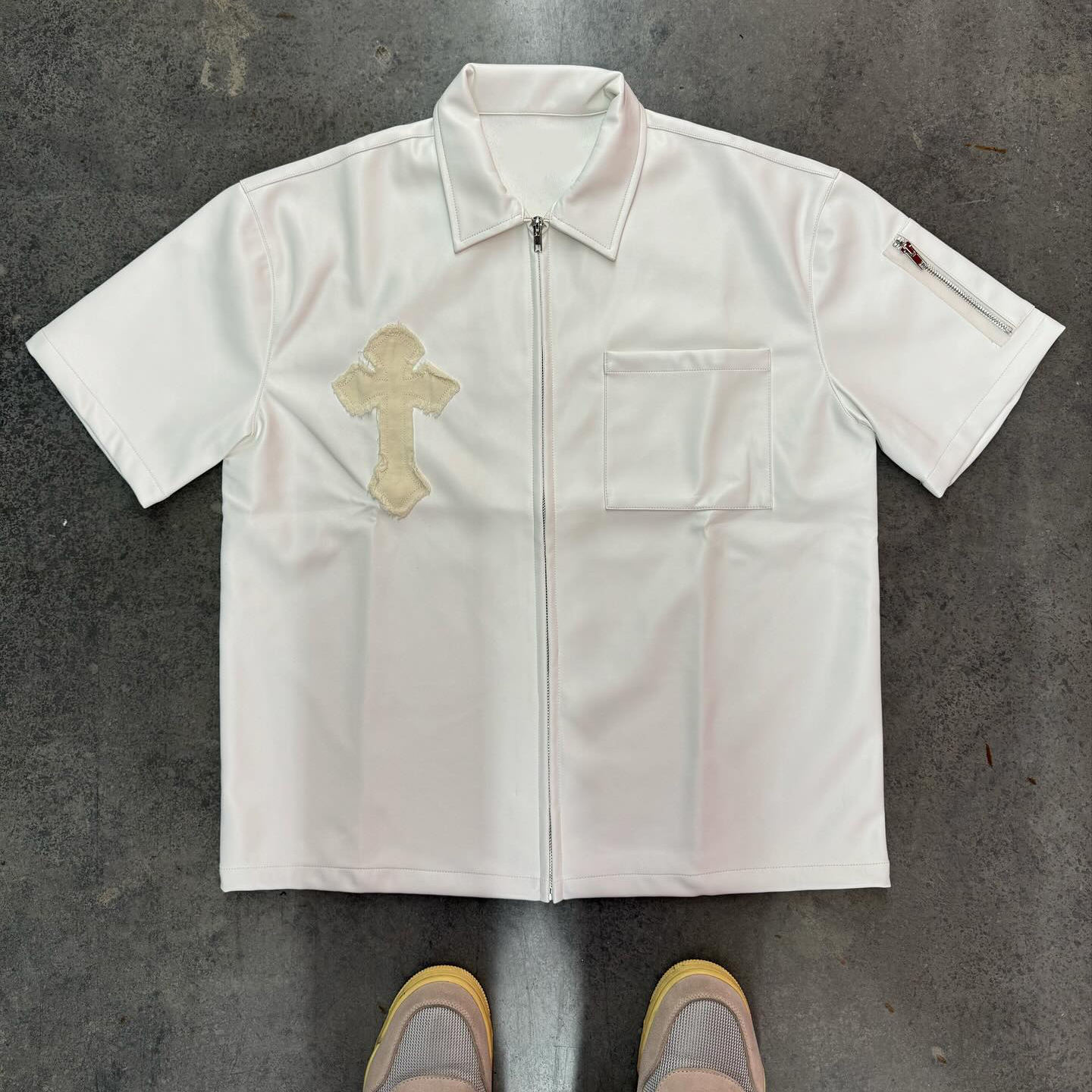 Fashionable personalized pu leather zipper shirt