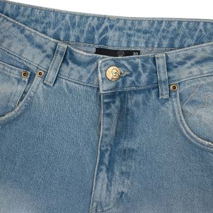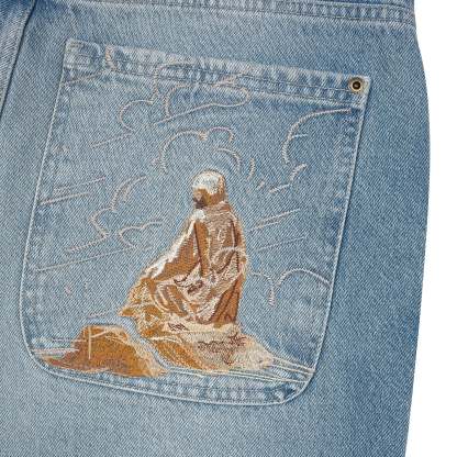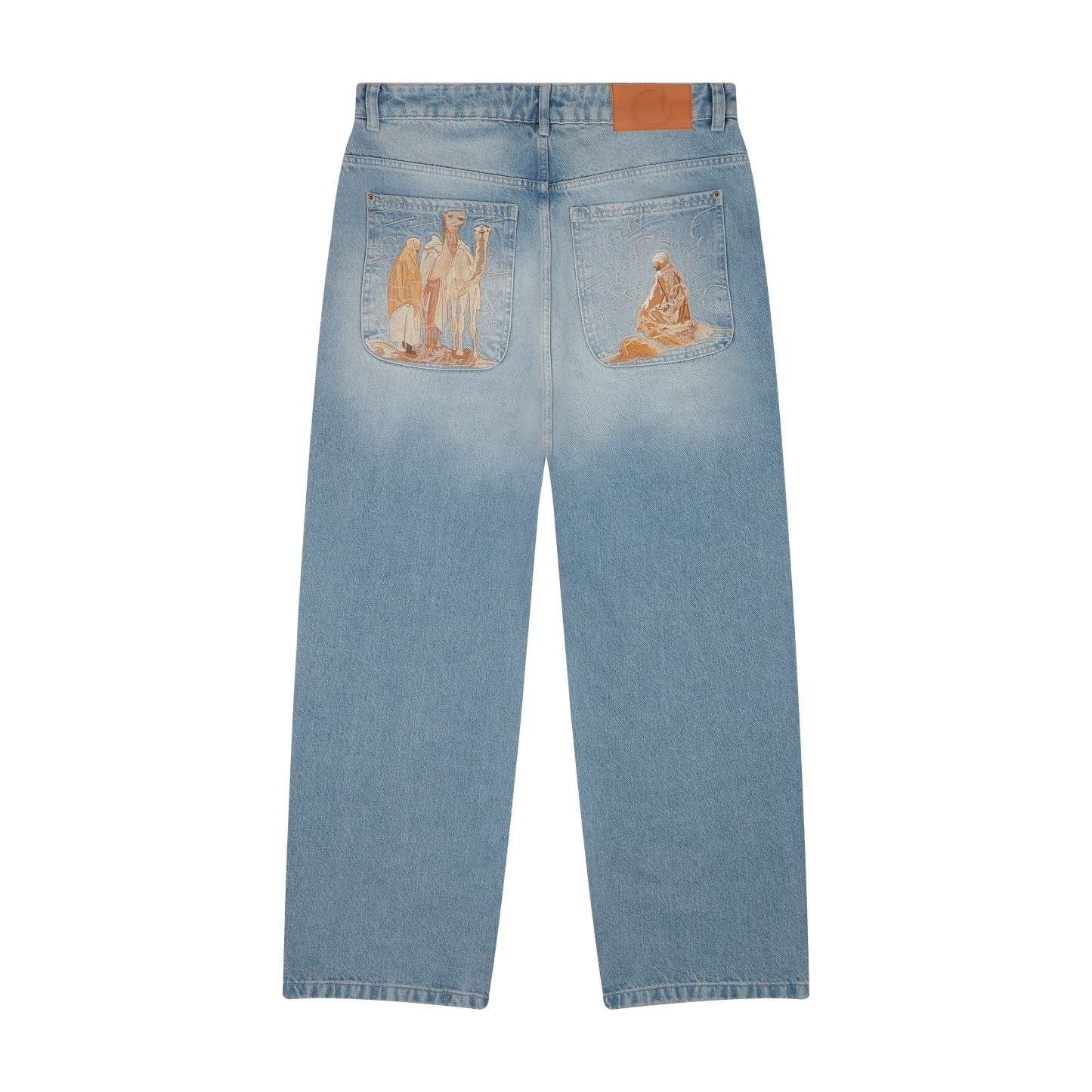 embroidery on back pockets / leather patch / baggy fit